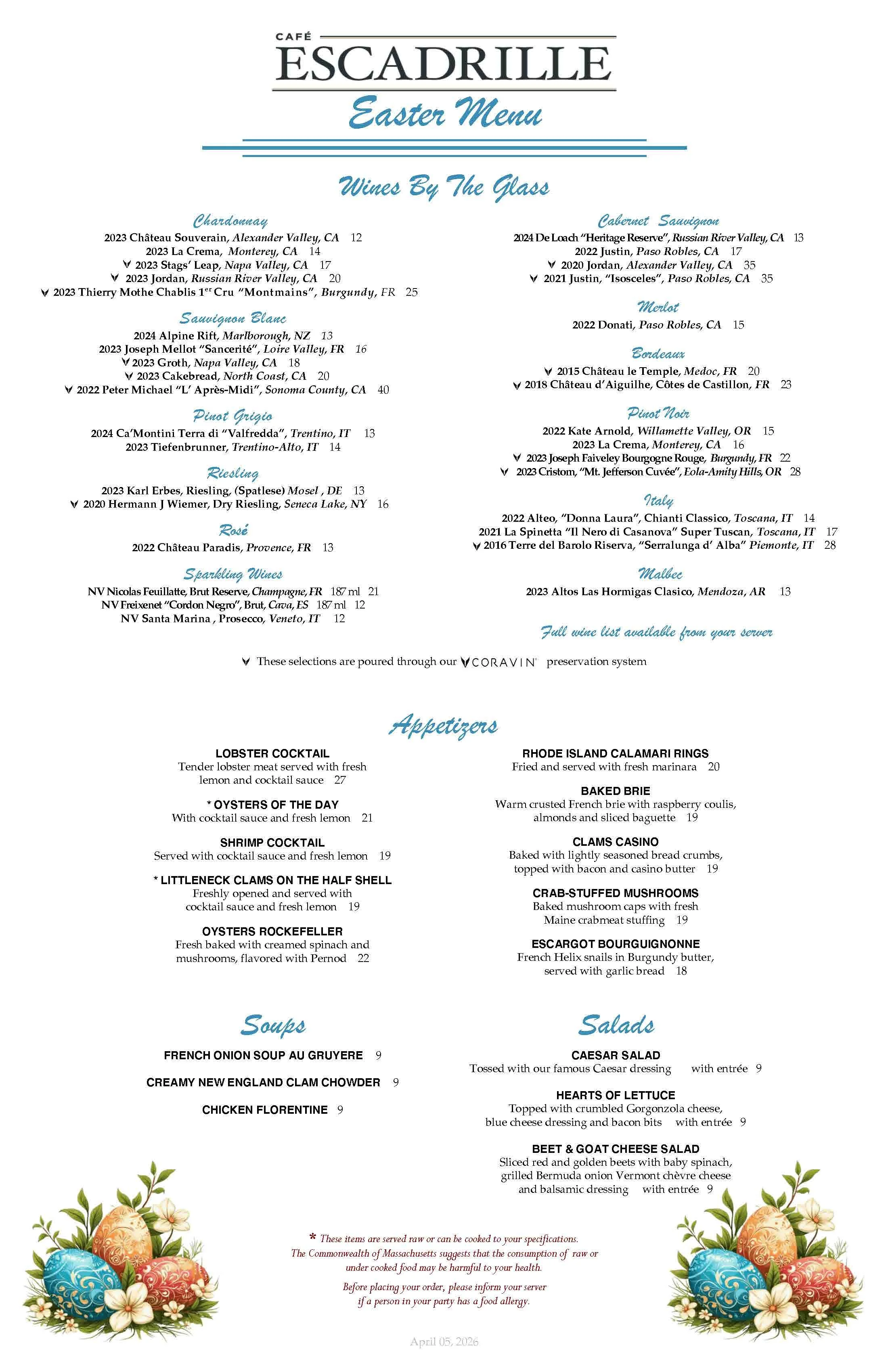 EASTER DINNER MENU